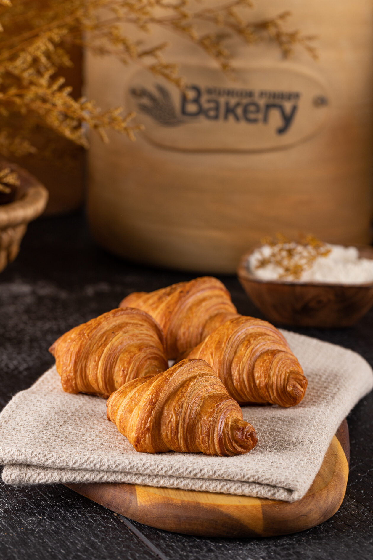 Our Butter Croissant is crafted with precision and care, using only the finest ingredients โ including 100% organic wheat flour and rich, high-quality French butter. Each croissant is delicately layered through traditional lamination, allowing steam from the butter to create tender, flaky layers that melt in your mouth. The result is a golden, airy pastry with a rich buttery aroma and perfect bite.